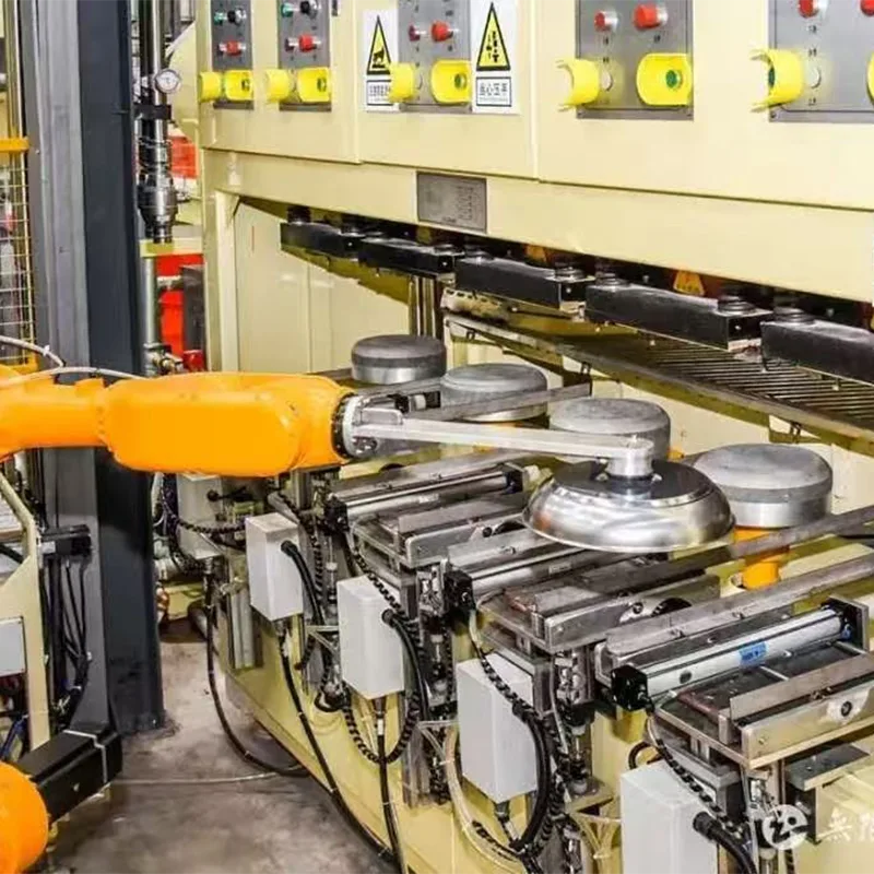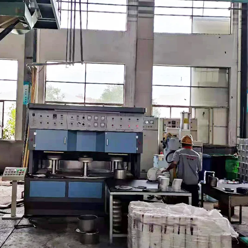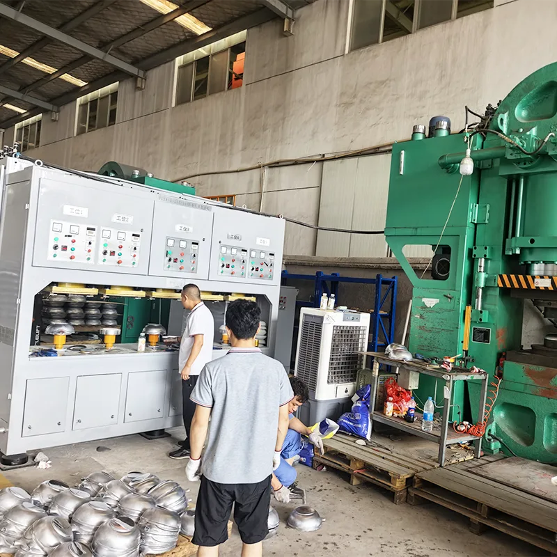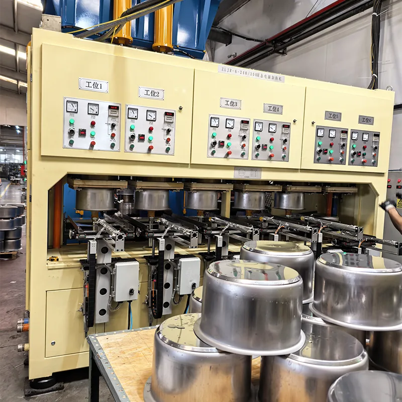 Չժանգոտվող պողպատից կաթսաներ արտադրող հայտնի ձեռնարկության աշխատանքային տեղամաս՝ պտտվող ջեռուցման մեքենաների միջոցով
