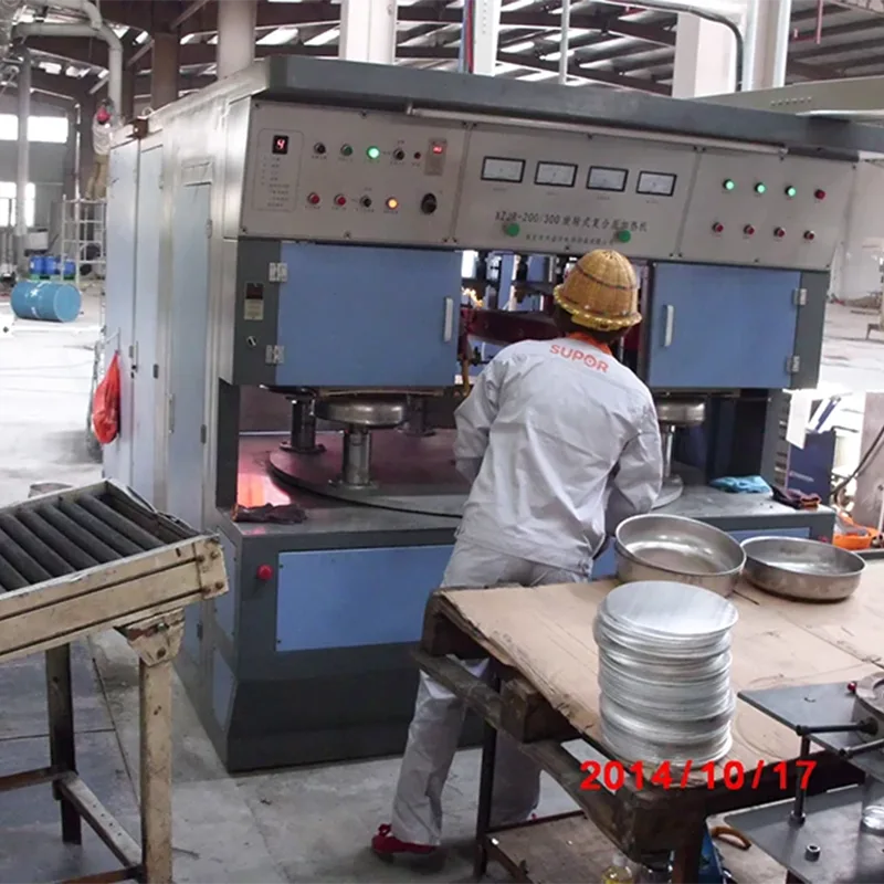 Ալյումինե կաթսայի հատակի ջեռուցման մեքենայի աշխատանքային տեղամաս