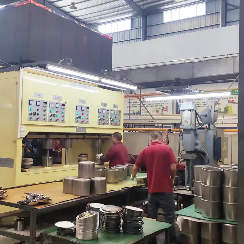 Չժանգոտվող պողպատից կաթսայի աշխատանքային տեղամաս՝ հինգ կայանանոց ներկառուցված ջեռուցման մեքենայի՝ հայտնի Գուանդոնգի ձեռնարկությունից